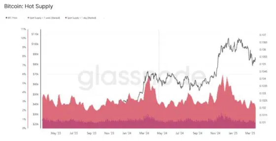 - 비트코인 핫 서플라이 감소: 암호화폐 데이터 분석업체 글래스노드에 따르면, 비트코인의 ‘핫 서플라이’ 지표가 5.9%에서 2.3%로 감소해 약 50% 하락했습니다. 이는 시장 참여도가 줄어들고 있음을 보여줍니다.