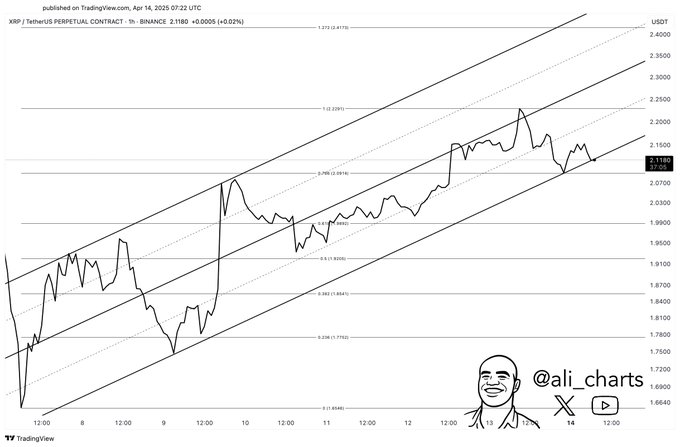 시장에서는 XRP가 2.22달러 저항선을 돌파할 경우 2.40달러까지 상승할 가능성이 있다고 전망합니다. 암호화폐 애널리스트 알리는 1시간 차트에서 ‘상승 삼각형’ 패턴을 확인하며 강한 매수세 축적을 의미한다고 설명했습니다. 현재 XRP 가격은 2.13달러로 주요 저항선 바로 아래에서 횡보 중이며, 2.10달러 부근의 지지선은 유지되고 있습니다.