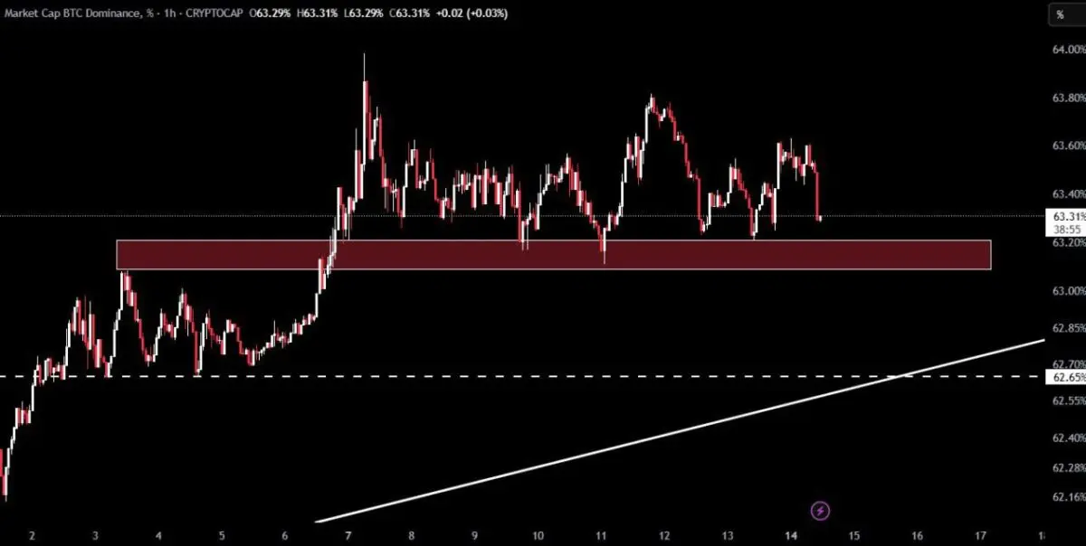 현재 주요 지지선은 63.00%와 62.65%로, 이 구간에서의 반응에 따라 알트코인과 비트코인의 시장 흐름이 달라질 수 있습니다. 온체인 분석가들은 도미넌스가 63% 아래로 내려가면 알트코인의 상승 흐름이 강화될 가능성이 있다고 전망하며, 반대로 이 지점에서 반등할 경우 알트코인 약세가 다시 시작될 수 있다고 분석했습니다.