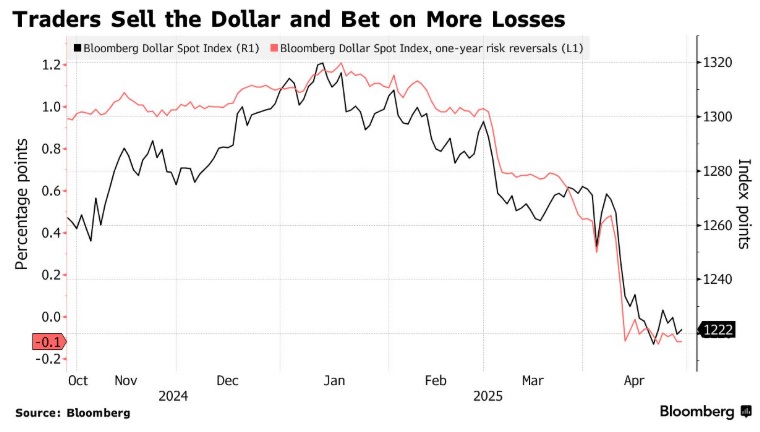 - 미국 주식과 국채 대량 매도, 옵션 시장에서 달러에 대한 부정적 전망 증가.