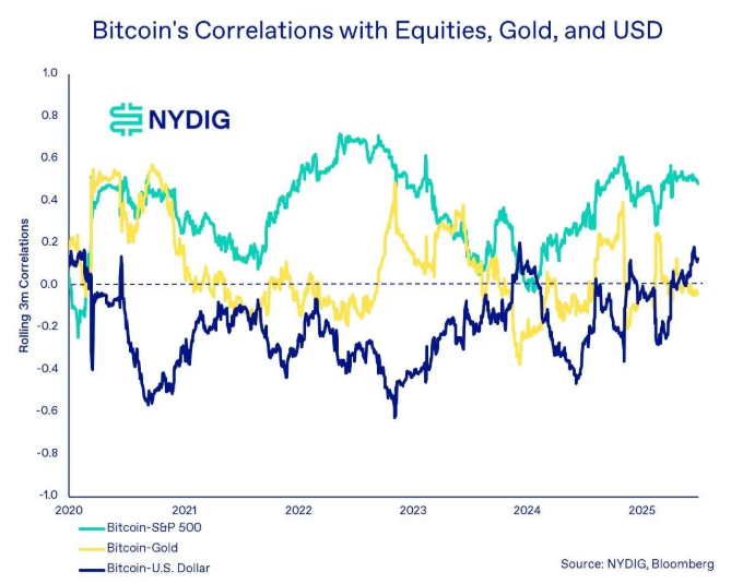 비트코인(BTC)은 한때 반(反)제도적 자산으로 주목받았으나, 최근 월가의 영향 아래 매크로 경제에 연동되는 리스크 자산으로 인식되고 있다. 비트코인의 미국 주식과의 상관관계가 증가하면서,