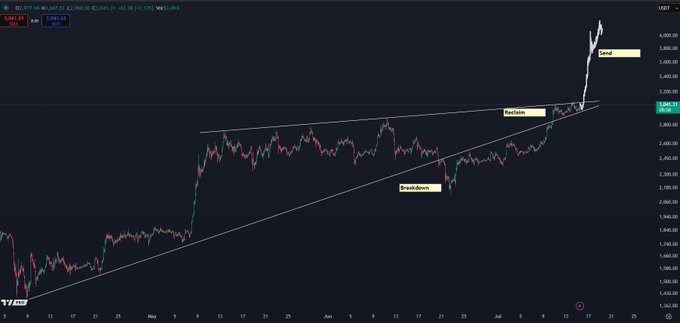 - ETH는 현재 3185달러, 전일 대비 4.32% 상승, 최근 일주일간 20% 급등