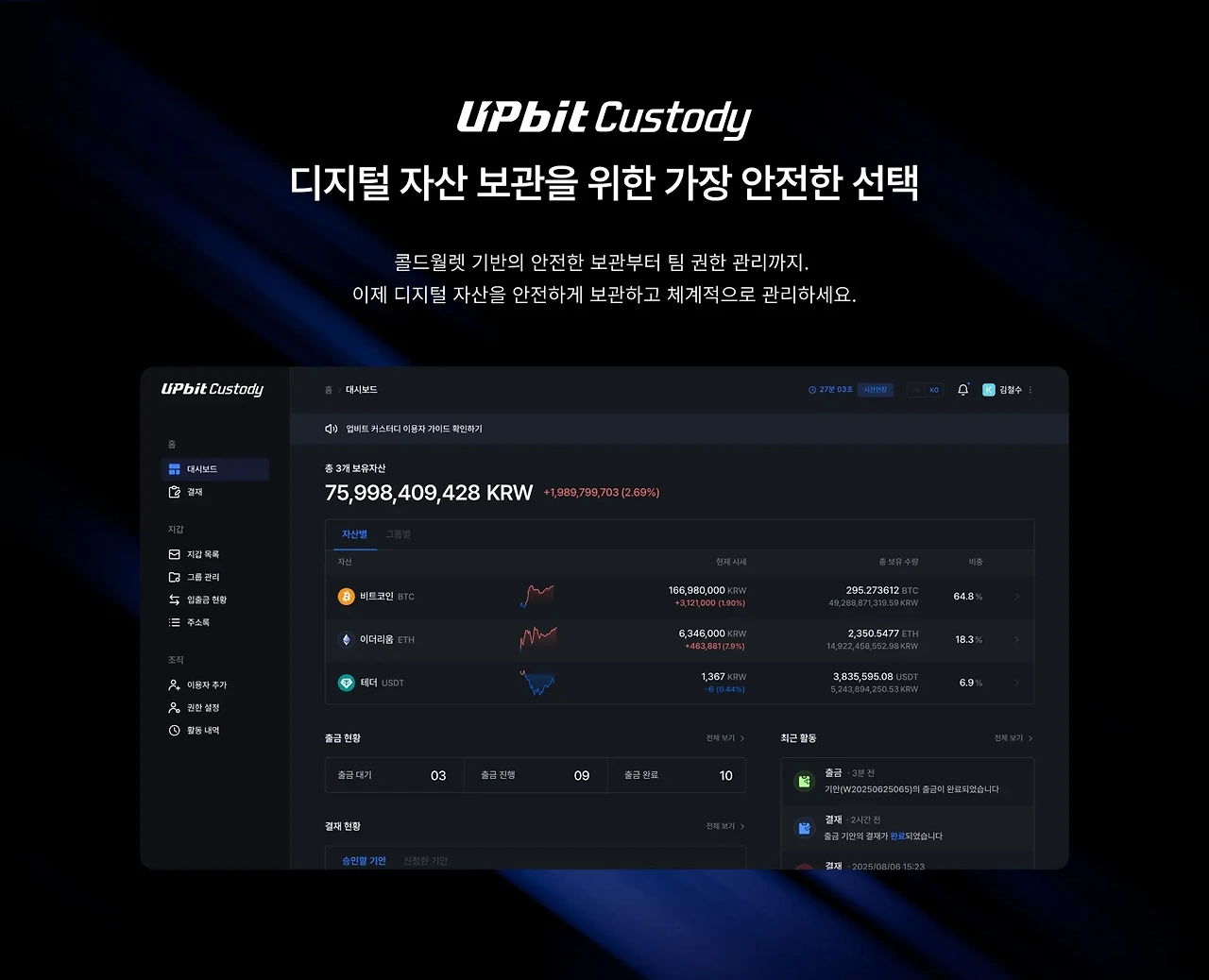 - 대상: 법인 및 기관 전용 가상자산 수탁 서비스