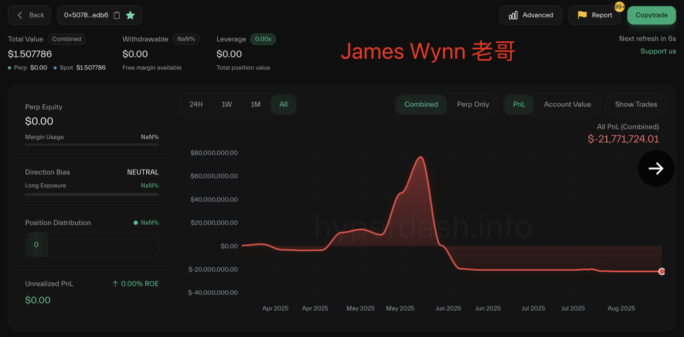 하이퍼리퀴드에서 활동하는 유명 고래 3명이 모두 손실을 기록했다고 엠버CN이 전했다. 그러면서 “제임스윈은 5월 말 기...