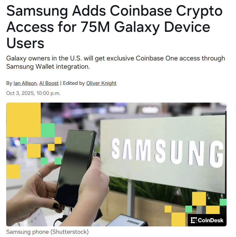 - 코인베이스 CEO 브라이언 암스트롱은 “삼성과의 협력으로 암호화폐 접근성이 개선될 것”이라고 언급.