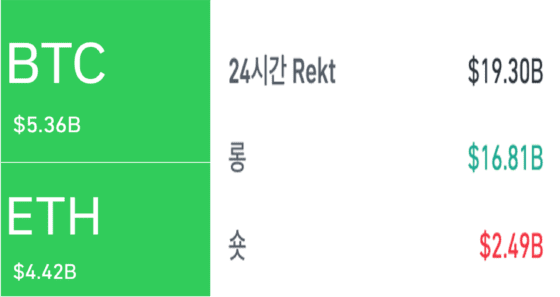 - 24시간 동안 193억 달러(약 27.6조 원) 규모의 포지션 청산 발생.
