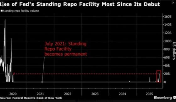 미국 연방준비제도(Fed)의 상설 레포 기구(SRF) 수요가 급증하며 단기 자금 시장의 유동성 경색 우려가 커지고 있다. 2일(현지시간) 금융 전문 분석 트위터 계정 코베이시 레터(The Kobeissi Letter)에 따