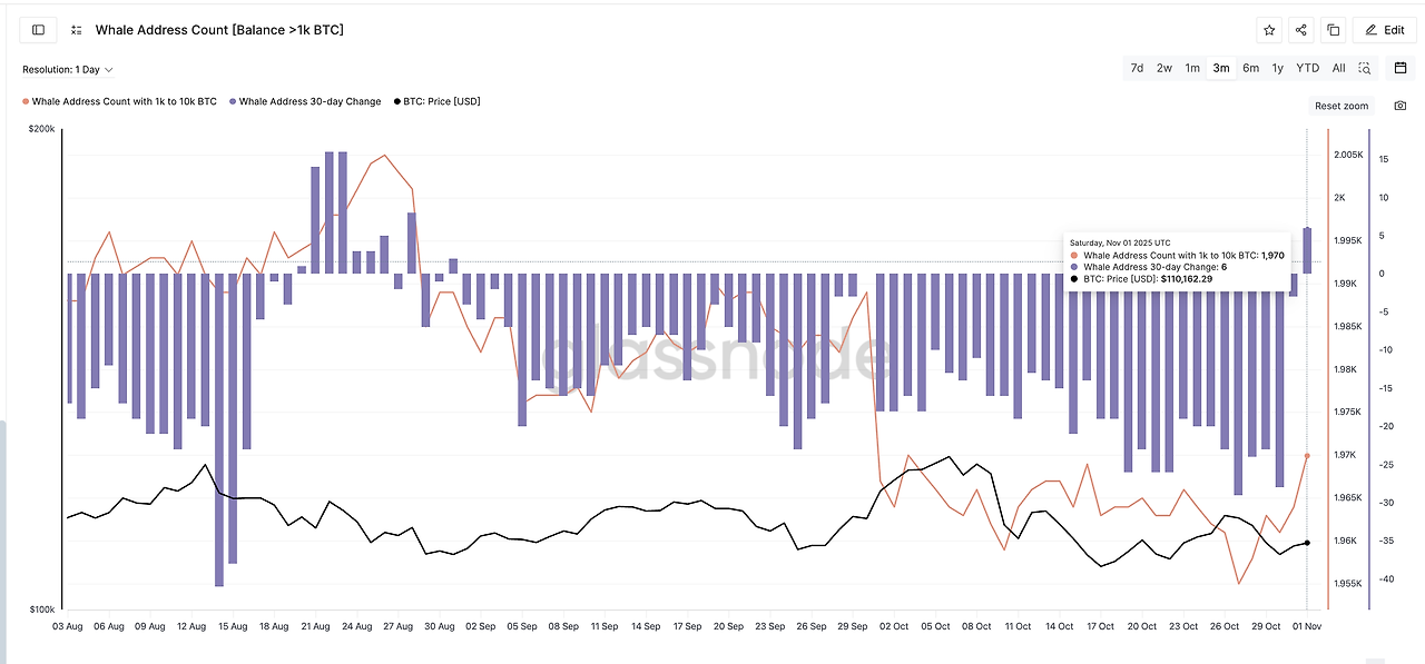 - 8월 31일 이후 처음으로 고래 주소 수가 30일 기준 +6 증가