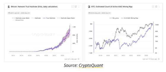 - 해시레이트 상승은 네트워크 보안 강화 및 장기적 강세 신호