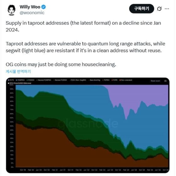 - 일부 전문가들은 이를 양자컴퓨터 시대의 위협에 대비한 대규모 보유자(‘고래’)들의 주소 재배치로 해석
