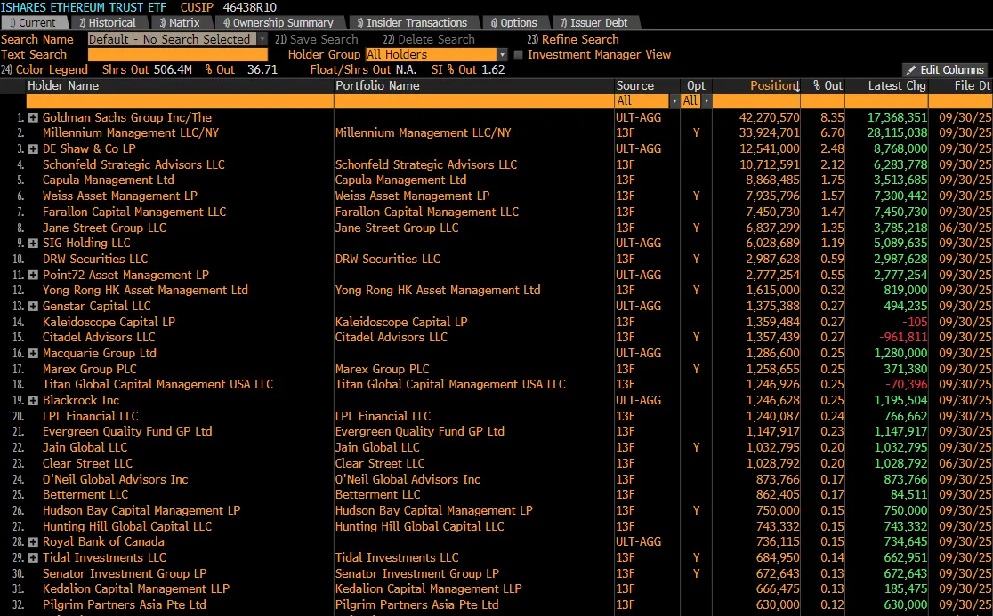 - 골드만삭스에 이어 두 번째로 많은 ETHA 보유 기관으로 확인됨.