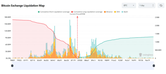 - 8만3000~8만6000달러 구간에 롱 청산 밀집 → 추가 하락 시 대규모 청산 발생 가능
