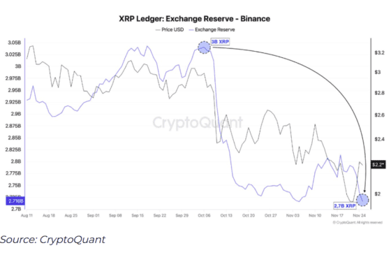 바이낸스 XRP 보유량 감소 요약