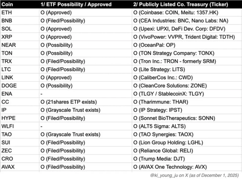 - 이미 ETF 승인·재무 편입: ETH, SOL, XRP, LINK