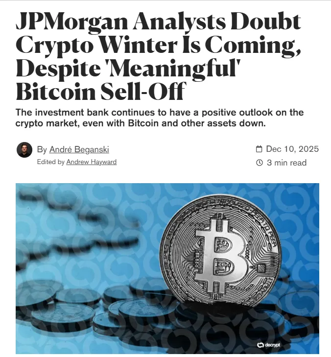 - JP모건은 최근 보고서에서 크립토 윈터라는 표현은 시기상조라고 평가.