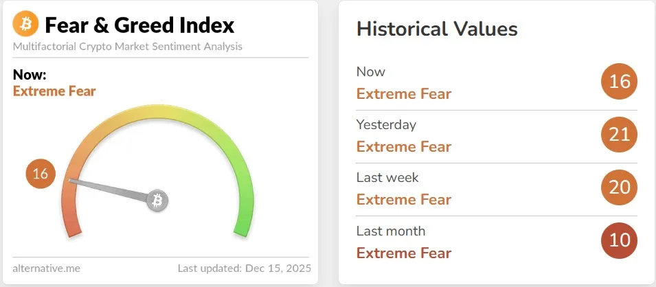크립토 ‘공포·탐욕 지수’ 16...극단적 공포 지속 - 코인니스