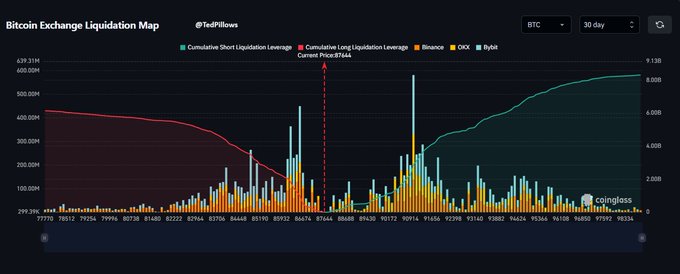 - 이는 주요 파생상품 거래소의 레버리지 포지션 분포 기반 추정치