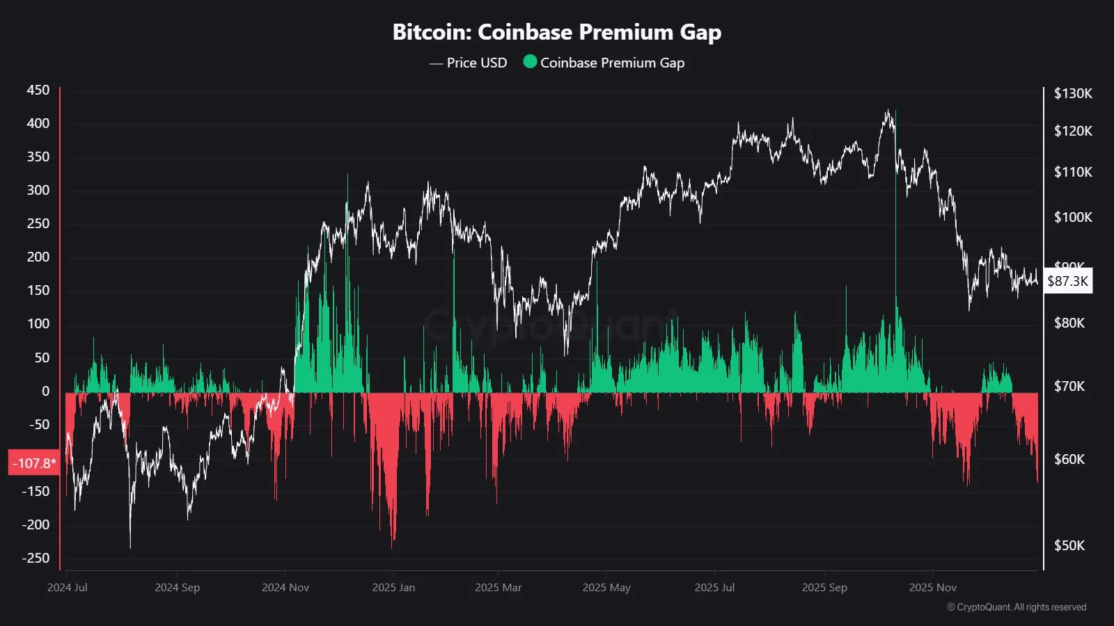 코인베이스 프리미엄 -$122…연중 5번뿐인 ‘극단적 할인’ - 코인니스