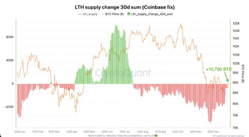 - 최근 비트코인 **장기 보유자(LTH)**들이 순매수 전환