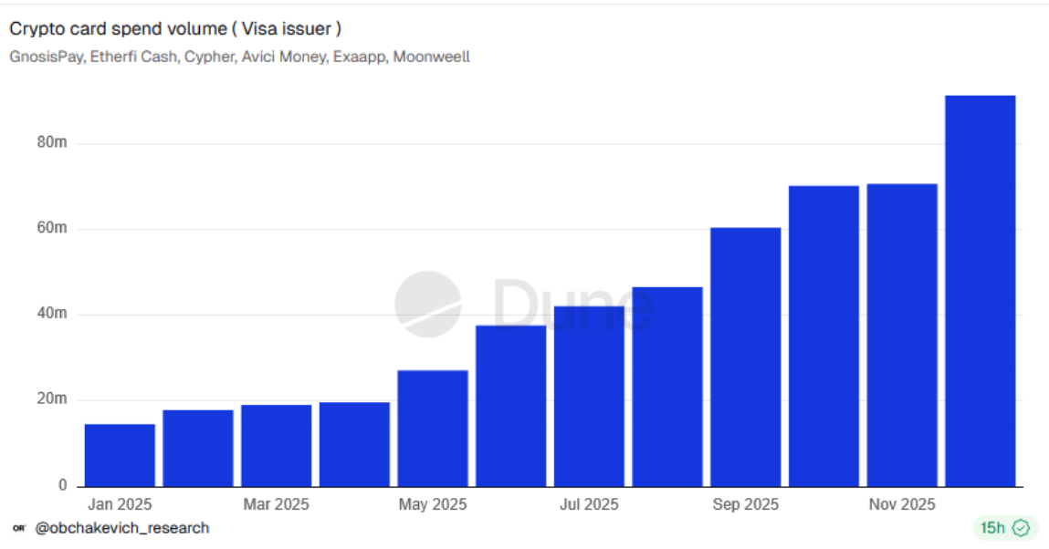 - 2025년 비자 제휴 가상자산 카드 6종 연간 순결제액: 9,130만 달러