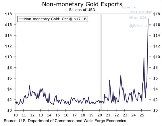 - 2025년 10월 기준 금 수출액은 171억 달러, 평소(2040억 달러)의 48배 수준.