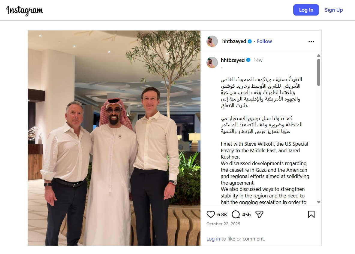 - 2025년 트럼프 대통령 취임식 4일 전, 아부다비 왕실 대리인들이 트럼프 일가와 비밀리에 계약을 체결.