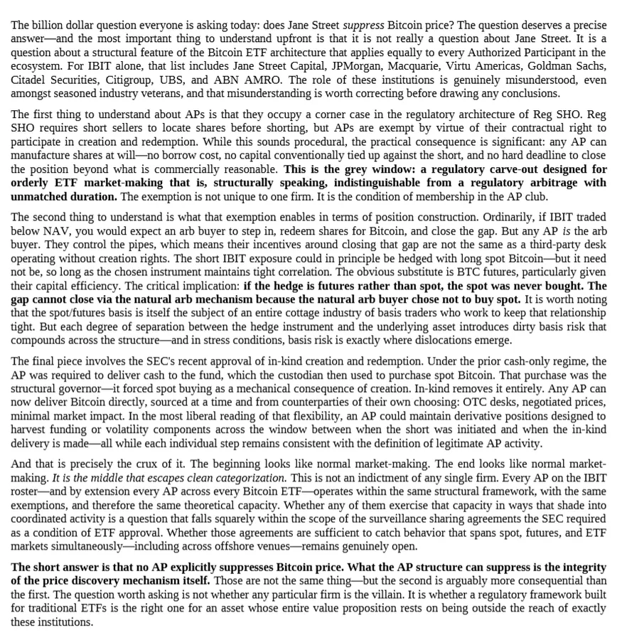 분석 "제인스트리트 등 증권사들이 BTC 자연스러운 상승 막아...ETF 구조적 문제" - 코인니스