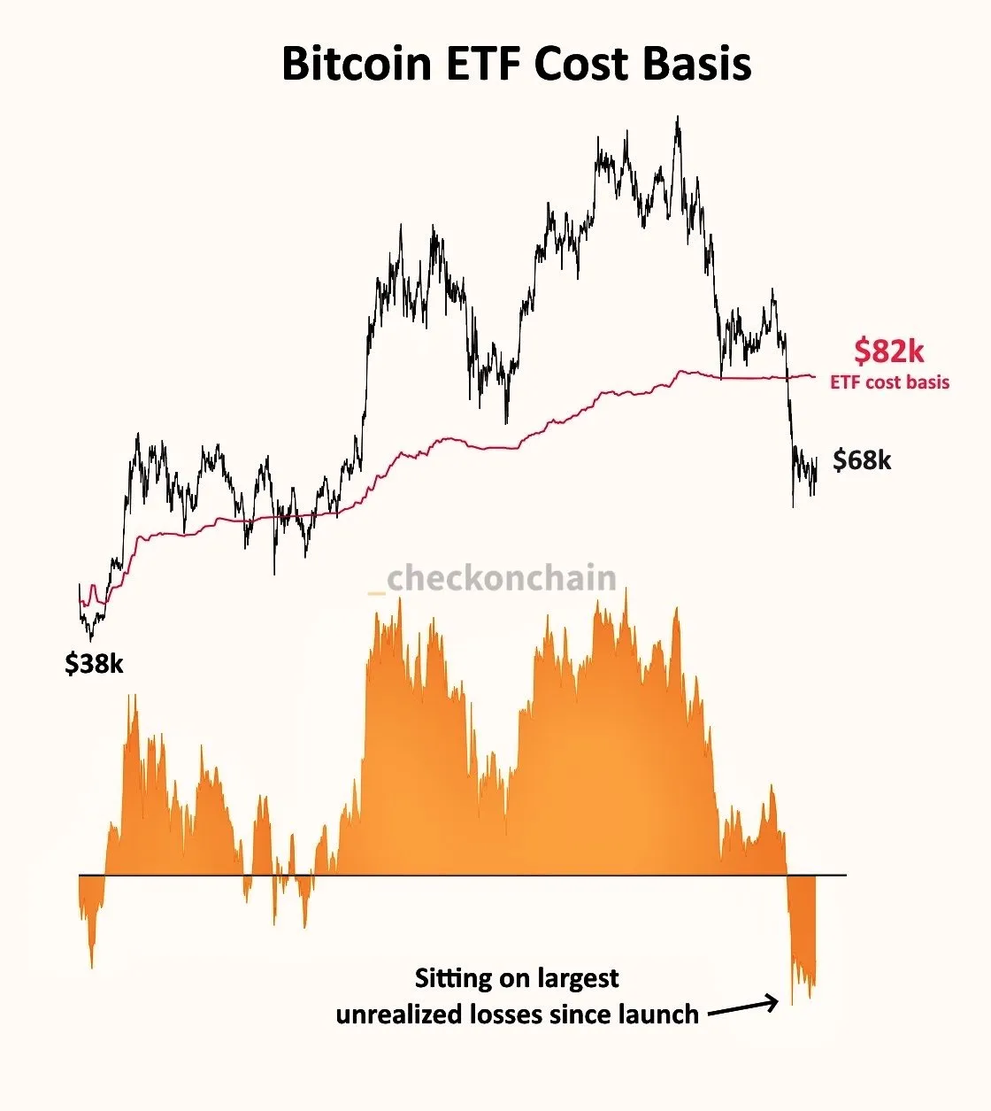 비트코인 퀀트 애널리스트 프랭크(Frank)가 X를 통해 비트코인 ETF 투자자들이 출시 이후 최대 규모의 미실현 손실 구간에 ...